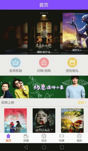 实时选座,不再怕心仪的座位被抢走。期待已久的大片上映前支持提前预定,提前购买。用会员卡还能享受底价购票哦!