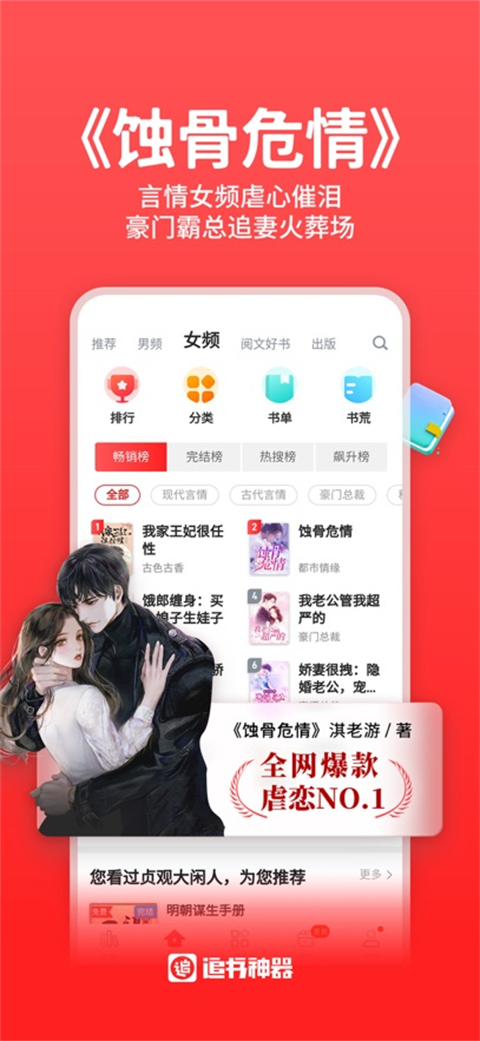 追书依据千万用户评测数据助你发现最美的小说与时下经典完结榜及热点原创最热榜:《少年的你》、《海棠经雨胭脂透》、《致大家暖暖的小时光》、《雪中悍刀行》、《余生,请多指教》、《你是我的答案》、《反派的后娘》、《逆天邪神》、《太古剑尊》、《上门狂婿》、《媵宠》、《皇叔逆天宠》、《元后传》、《第一狂妃》、《绝世武神》等多维度满足各类书虫的爱好!