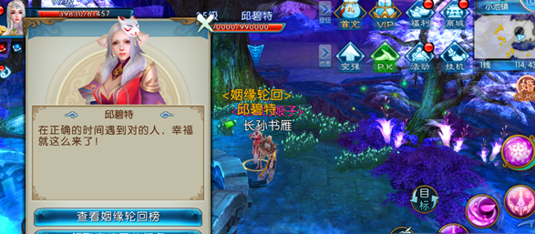 当玩家有意向探寻异性时,可以前往小池镇的【满月古井】,点击【满月古井】附近的NPC|邱碧特,可以打开【姻缘轮回】界面。